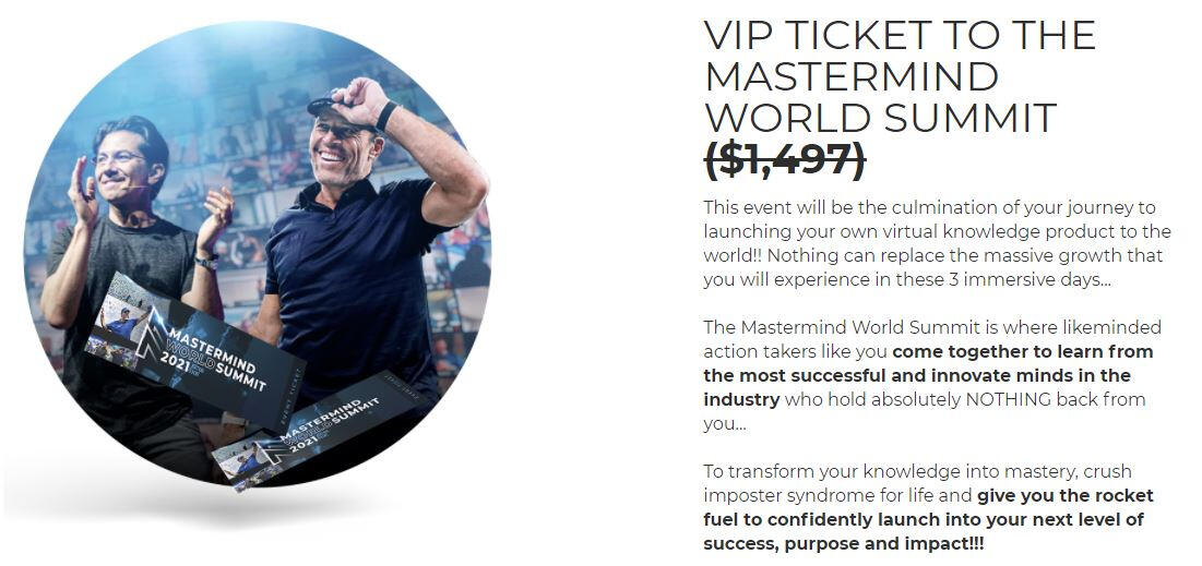 Join the greatest speakers at the Mastermind World Summit where knowledge turns into mastery, imposter syndrome goes away and your next level ignites during an epic 3 day full immersion experience. ($1,497)